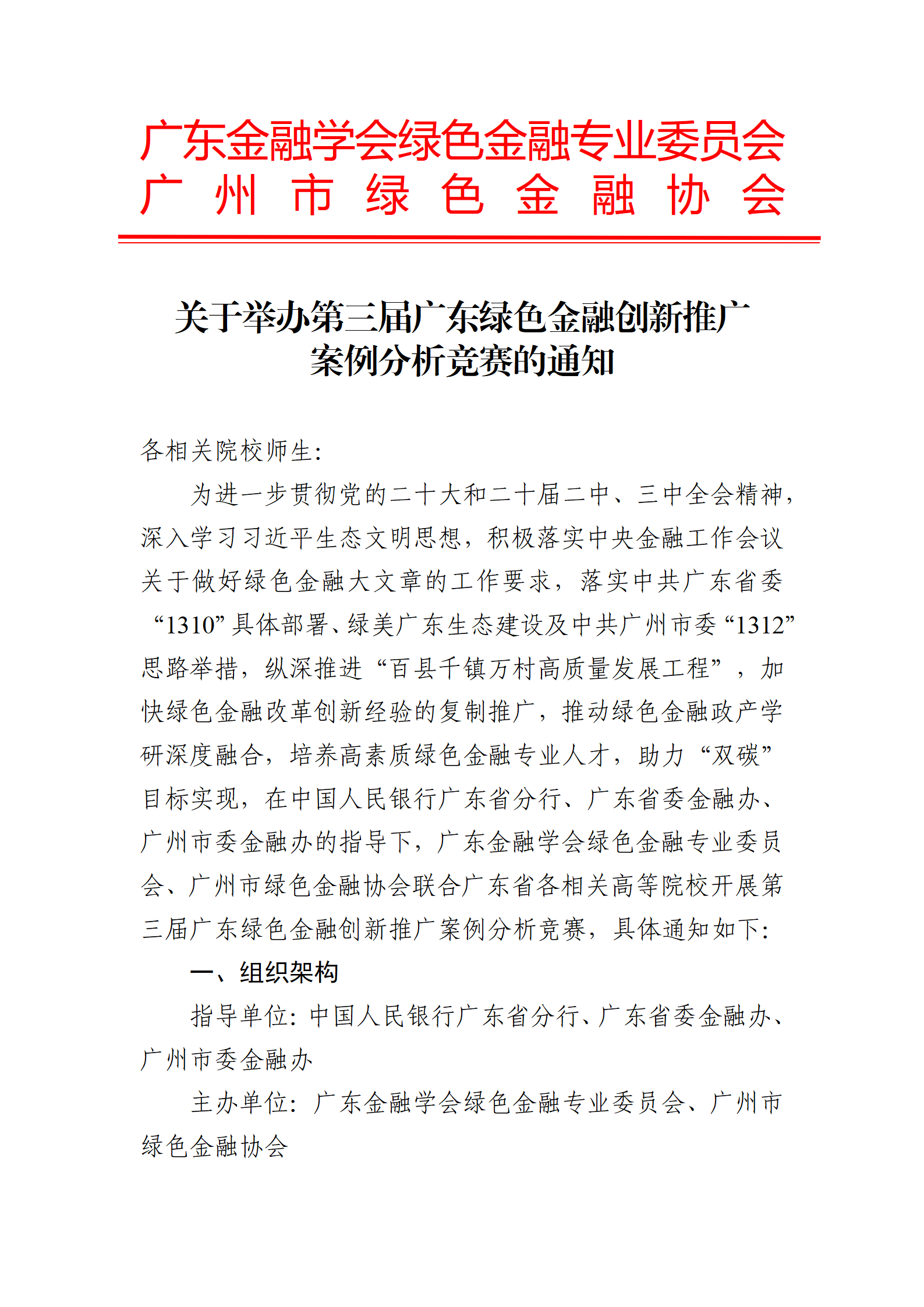 关于举办“第三届广东绿色金融创新推广案例分析竞赛”的通知