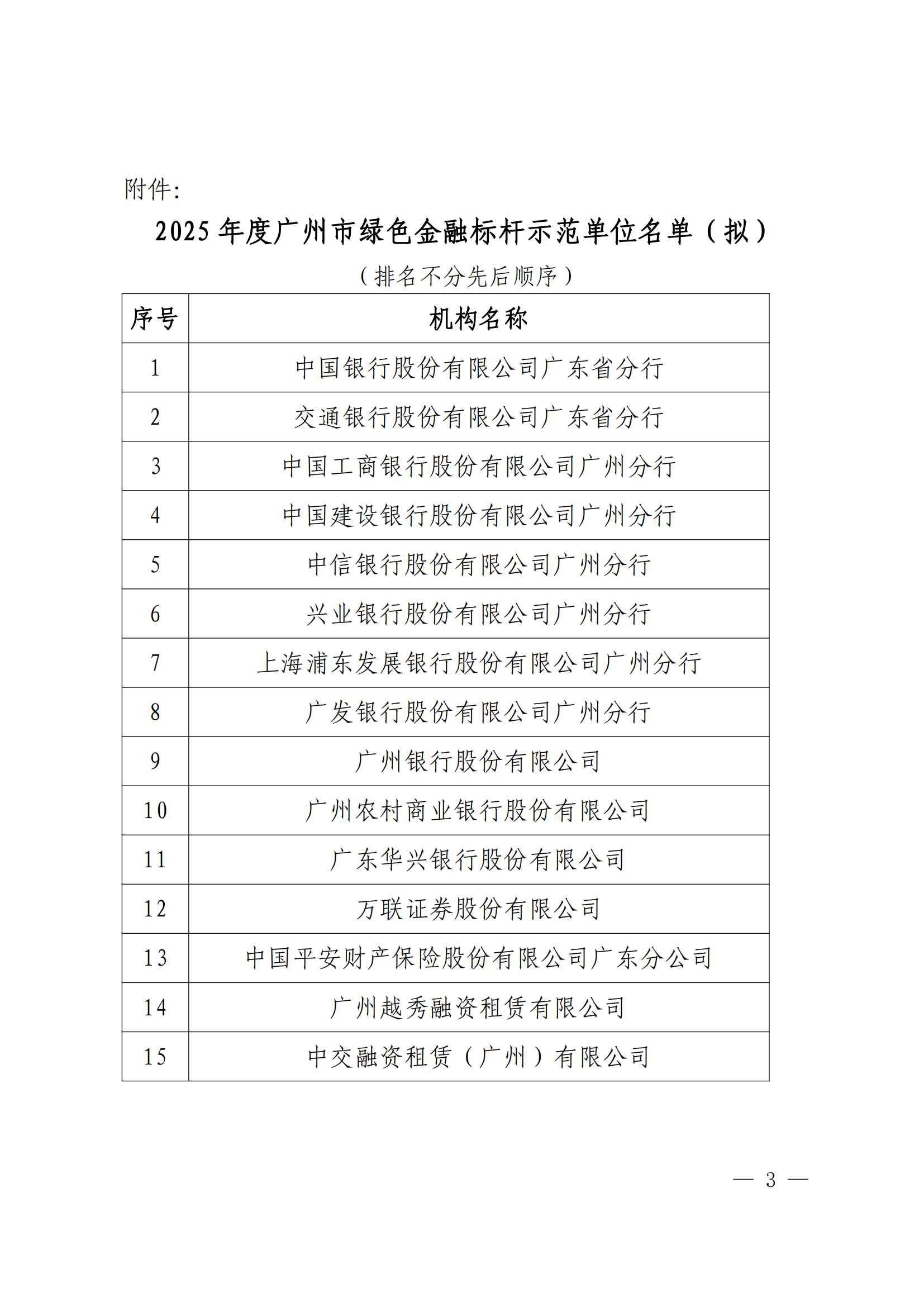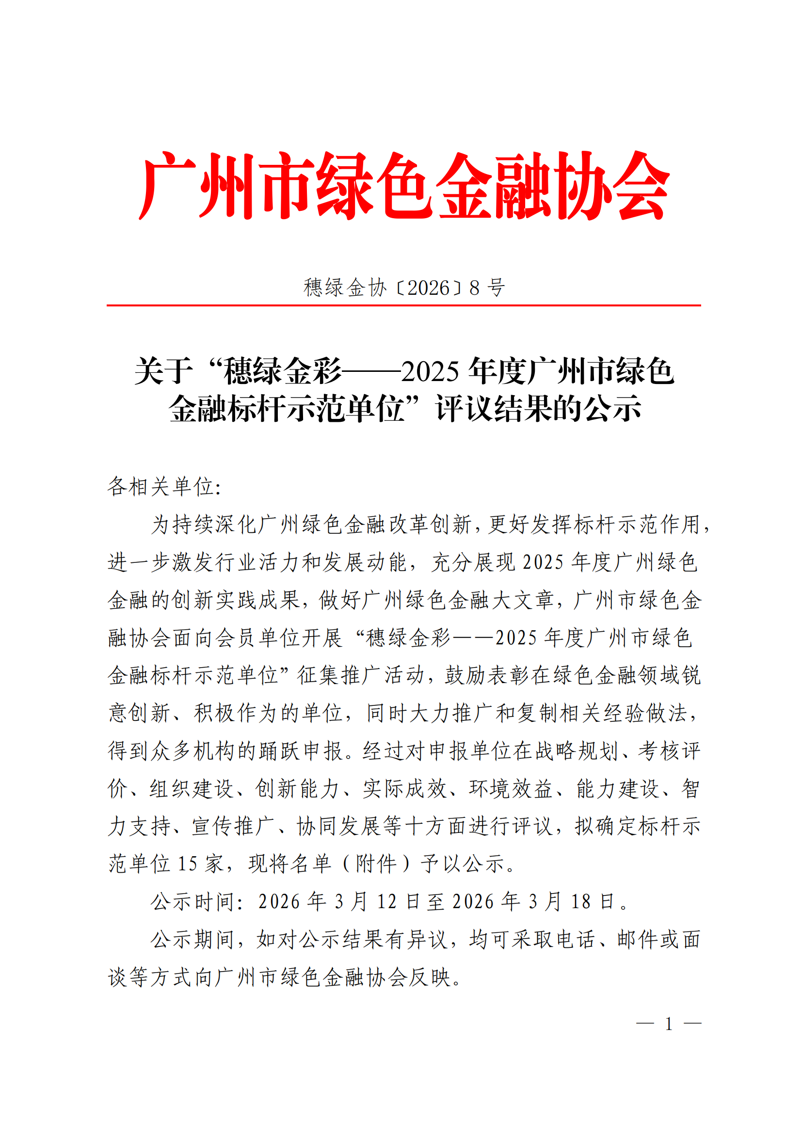 关于“穗绿金彩——2025年度广州市绿色 金融标杆示范单位”评议结果的公示